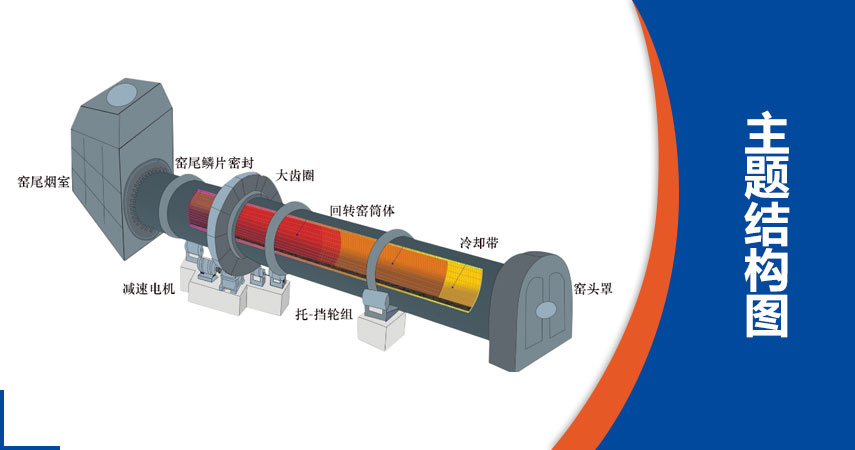 根據窯內的化學、物理反應,整個煅燒過程分為三個階段,即由窯頂從上而下依次為預熱帶、煅燒帶、冷卻帶。