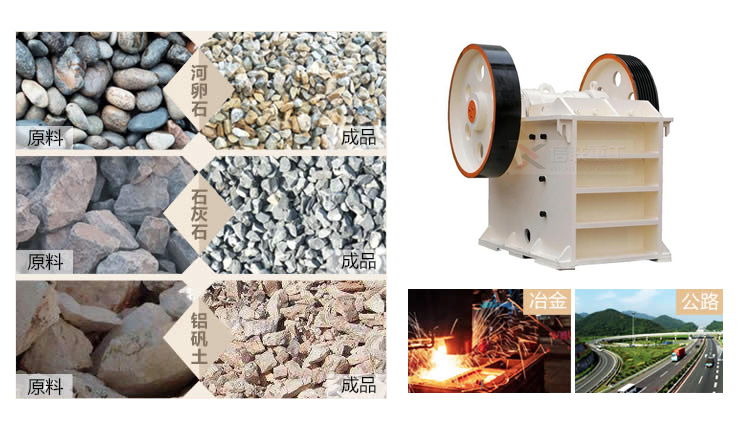 鄂式破碎機是出現較早的破碎設備,因其構造簡單、堅固、工作可靠、維護和檢修容易以及生產和建設費用比較少,因此,直到現在仍然廣泛地在冶金、化工、建材、電力、交通等工業部門,用于破碎抗壓強度在147——245MPa的各種礦石和巖石的粗、中、細碎。